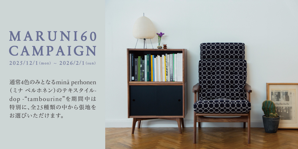 島家具製作所にて「MARUNI60 CAMPAIGN」を開催 12月1日(月)~2月1日(日)