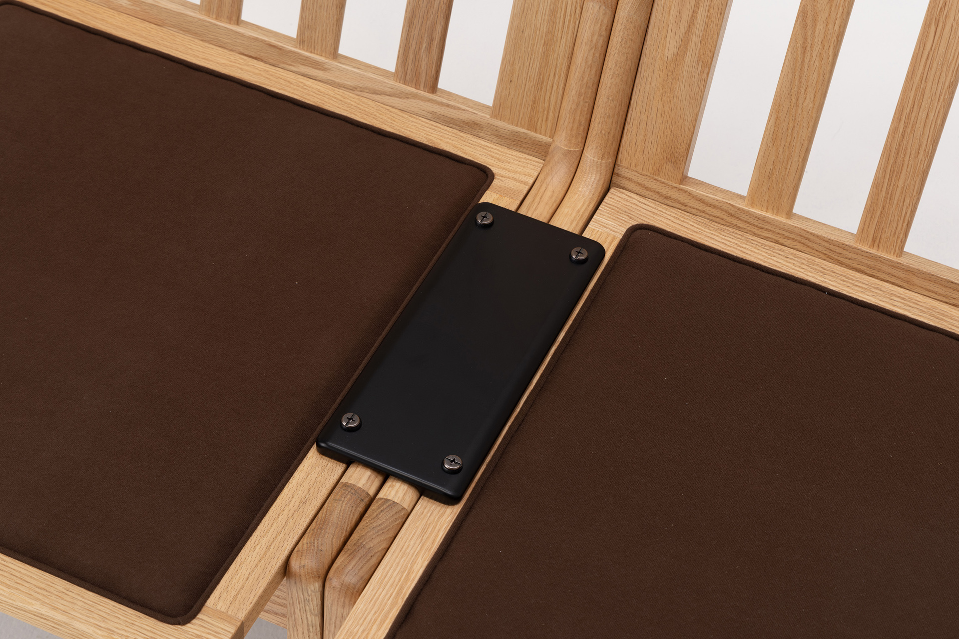 フレームチェア2シーターや3シーターをしっかりと固定するための連結パーツをご用意しました。座板固定用のボルト穴を利用して、連結パーツを取り付けます。