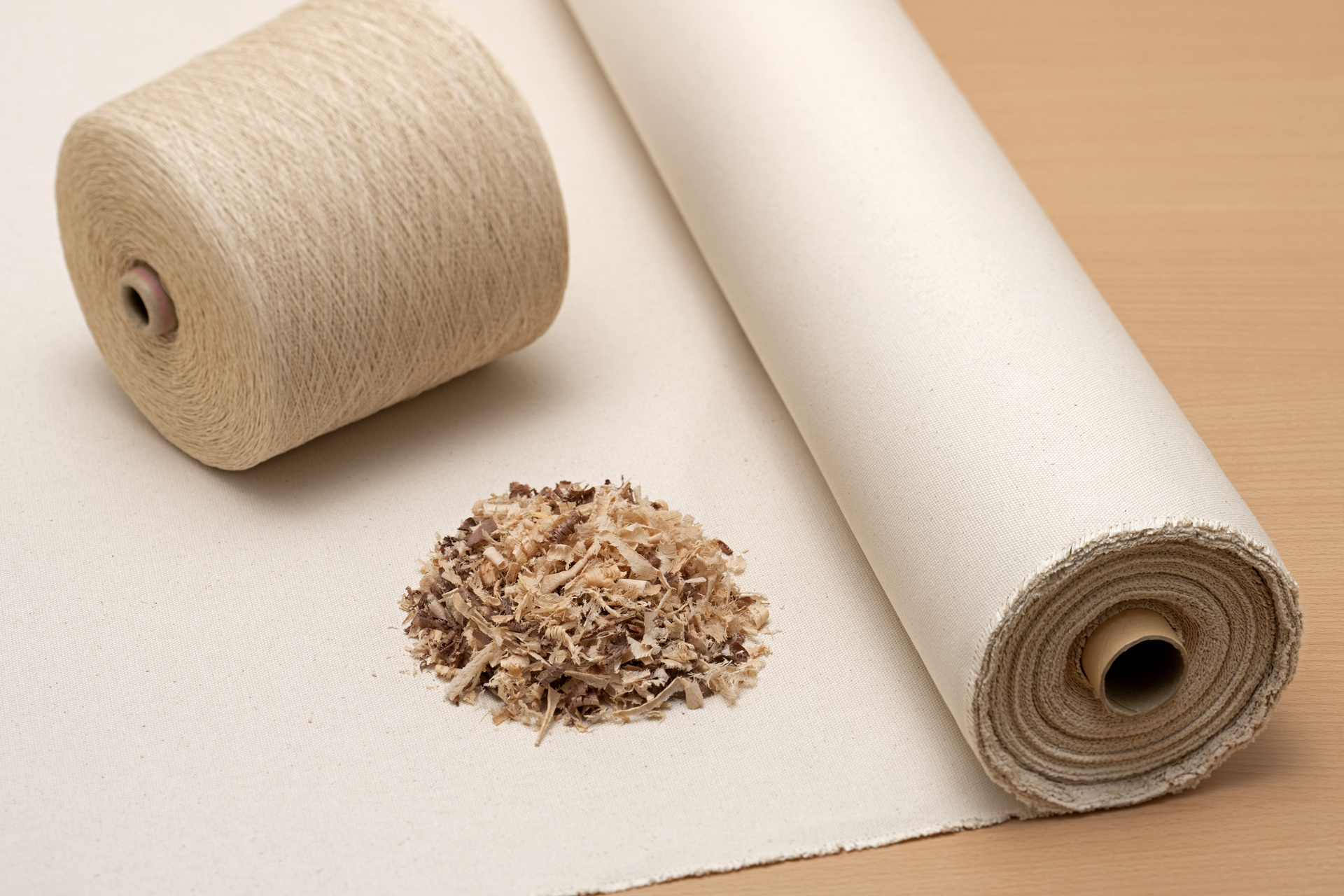 これまで目が向けられてこなかった木くずに、新たな価値を生み出した生地です。木材を削る過程で生まれた小さな木くずを横糸の一部に活用することで、軽さと強さを持ち合わせた家具用の生地として再生させました。