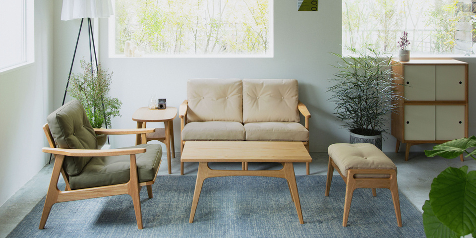 1960年代に製造・販売していた「みやじま( No.79)」を原型とするフレームチェア。このたび、生産過程で生まれる端材を有効活用した「モザイク」を、期間限定・数量限定にて発売いたします。