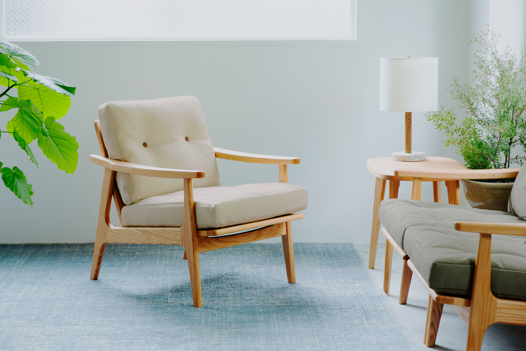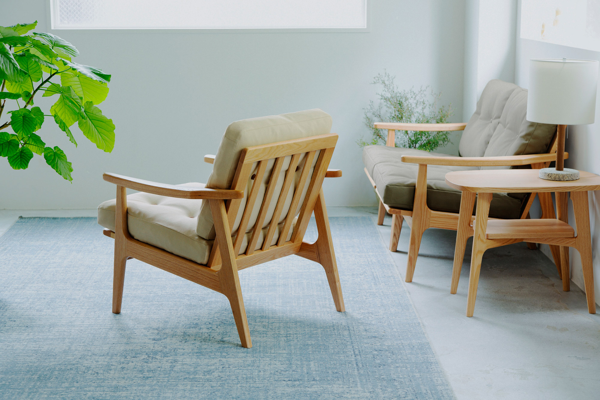 - 1シーターにプラスして、2シーター、3シーターに、ライフスタイルの変化に合わせて自由に組み合わせができるフレームチェアの拡張性をご紹介します。
